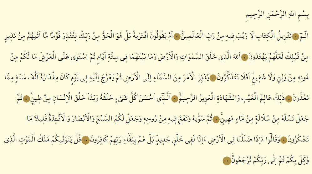 Secde Suresi – Arapça ve Türkçe Okunuşu