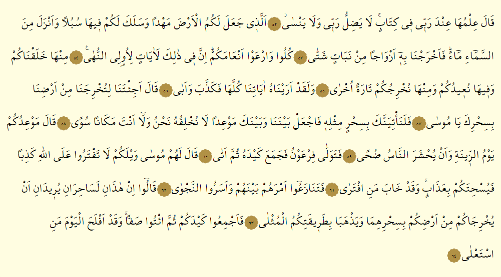 - Musa: “Onların bilgisi Rabbimin katında bir kitaptadır; Rabbim şaşmaz ve unutmaz.