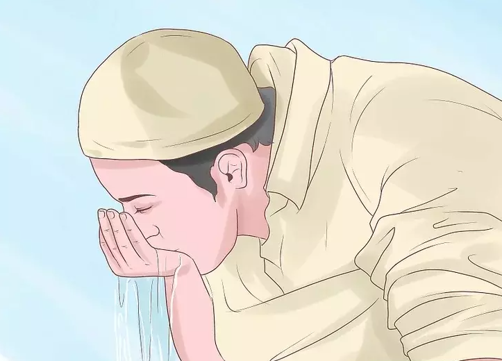 - Avuçlara su alıp, alından çene altına, şakaklara kadar üç kez yüz yıkanır