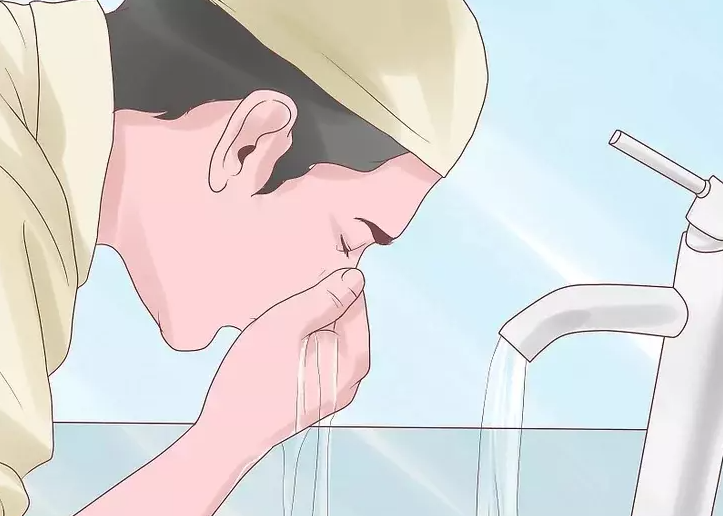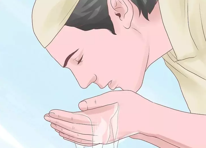 3.Sağ el ile ağıza üç kere su verilerek ağız yıkanır