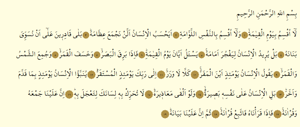 Kıyamet Suresi Arapça okunuşu