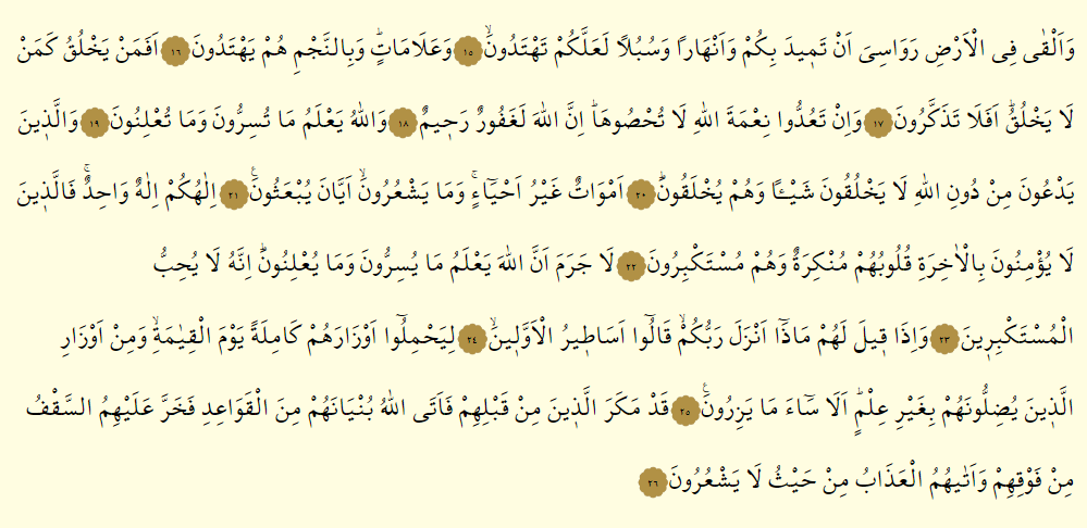 - Kad mekerellezine min kablihim fe etallahu bunyanehum minel kavaıdi fe harre aleyhimus sakfu min fevkıhim ve etahumul azabu min haysu la yeş’urun.