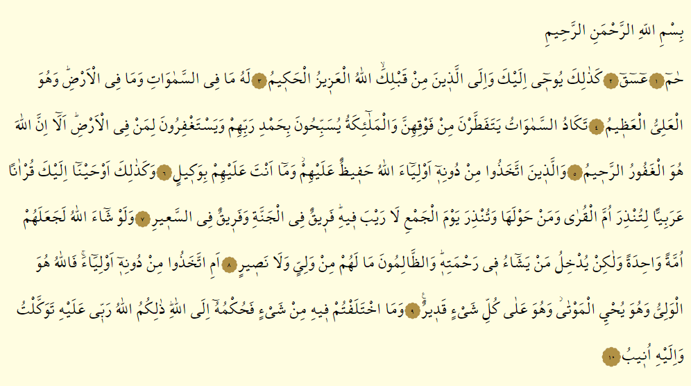 Şura Suresi Arapça okunuşu