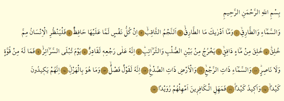 Tarık Suresi – Arapça ve Türkçe Okunuşu